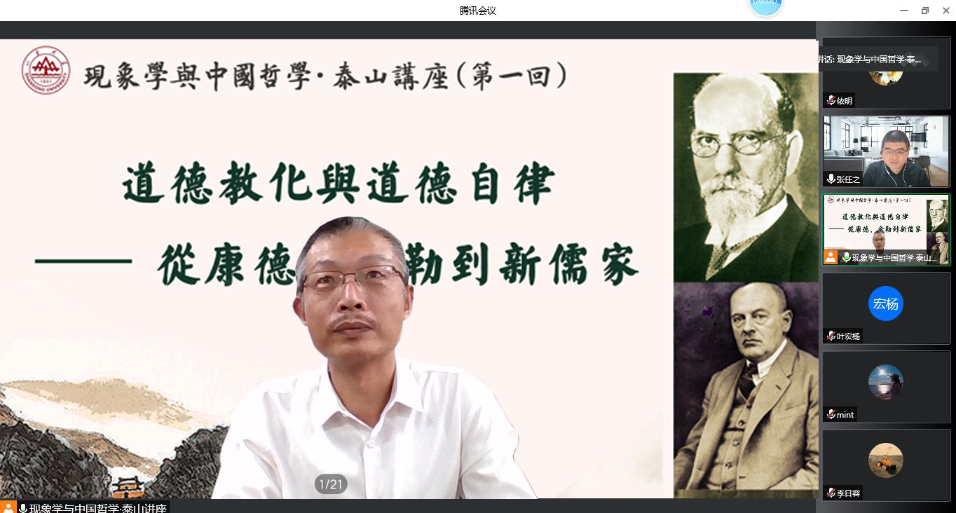 2022年9月29日19: 00—21: 30,太阳成集团tyc151cc现象学与中国文化研究中心、太阳成集团tyc151cc成功举办“现象学与中国哲学”泰山讲座(第一回)。本次讲座采取线上视频会议的形式,由校内外160余名专家学者和师生在线参与。本次讲座的主讲人是中山大学哲学系主任张伟教授,演讲题目是“道德教化与道德自律——从康德、舍勒到新儒家”,讲座由太阳成集团tyc151cc现象学与中国文化研究中心、太阳成集团tyc151cc陈治国教授主持。