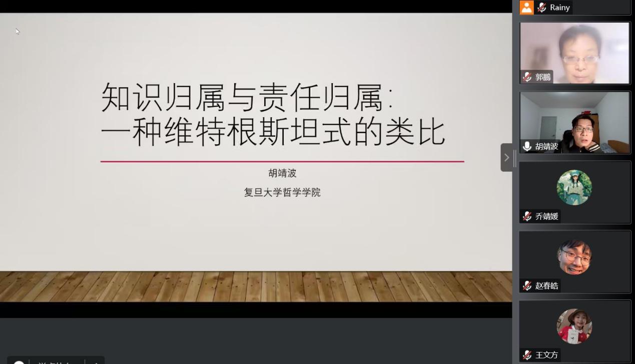 11月7日,复旦大学哲学学院博士后胡靖波谢做客“分析哲学论坛第(204期)”,给我院师生带来一场题为《知识归属与责任归属:一种维特根斯坦式的类比》的讲座,由我院郭鹏老师主持。