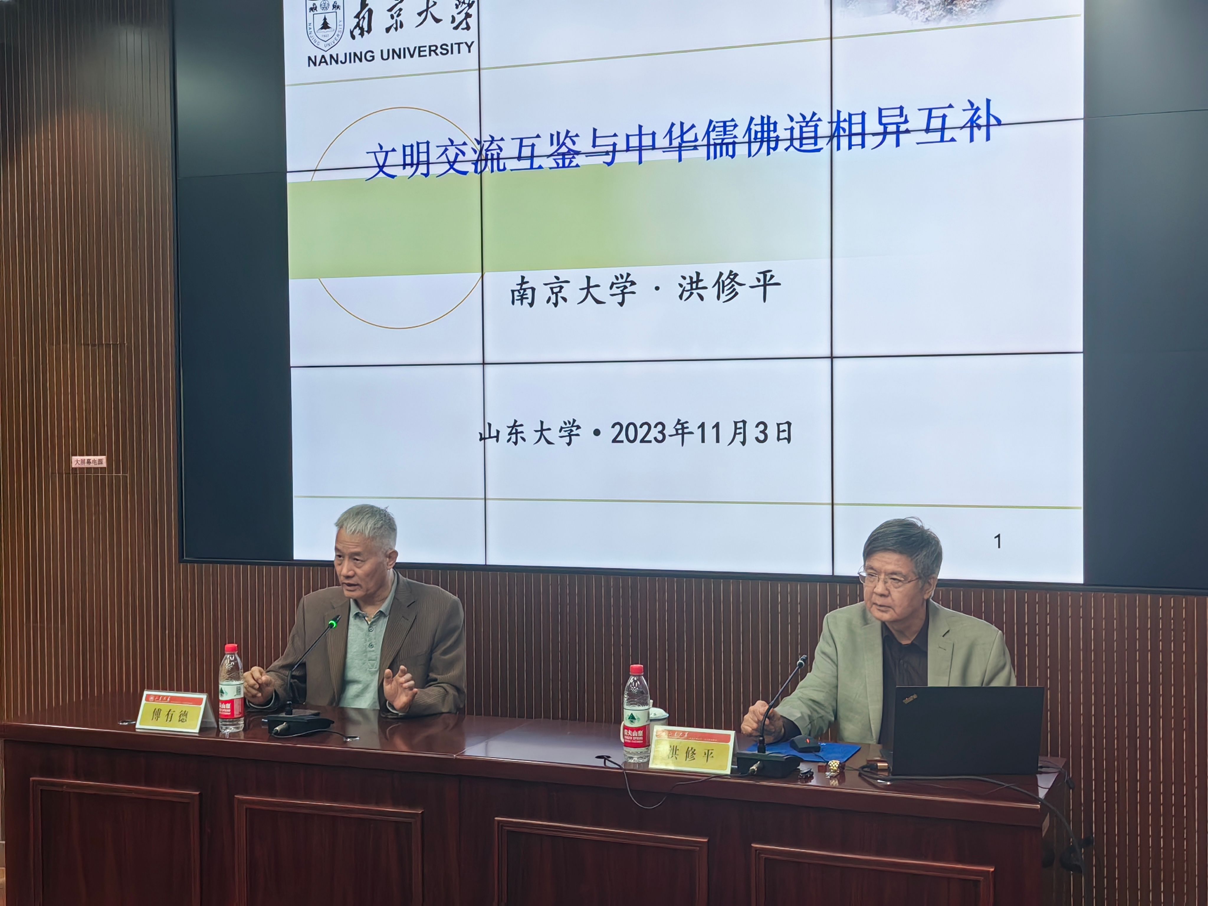 11月3日,南京大学特聘教授、南京大学东方哲学与宗教文化研究中心主任洪修平教授做客 “天人讲堂”第131讲,带来一场题为“文明交流互鉴与中华儒佛道相异互补”的讲座。