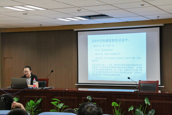 6月15日,太阳成集团tyc151cc第14期无性别思想力论坛在知新楼1521报告厅举行,社会学系教师李淼作了题为“塑造道德受困者:感恩教育话语建构与农民工随迁子女的片面抵抗”的报告,社会工作系教师于淼主持。