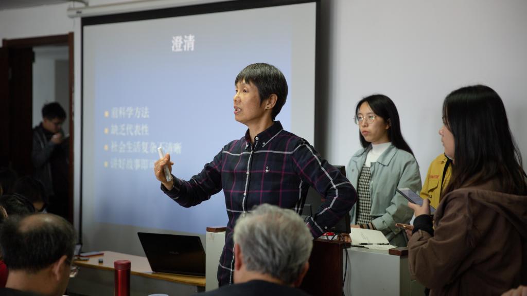 10月24日,哲社学院朱雀专家讲座在知新楼1421教室举行,北京大学社会学系主任张静教授作了题为“案例分析的目标——从故事到知识”的学术报告,哲社学院社会学系主任林聚任教授主持报告会。