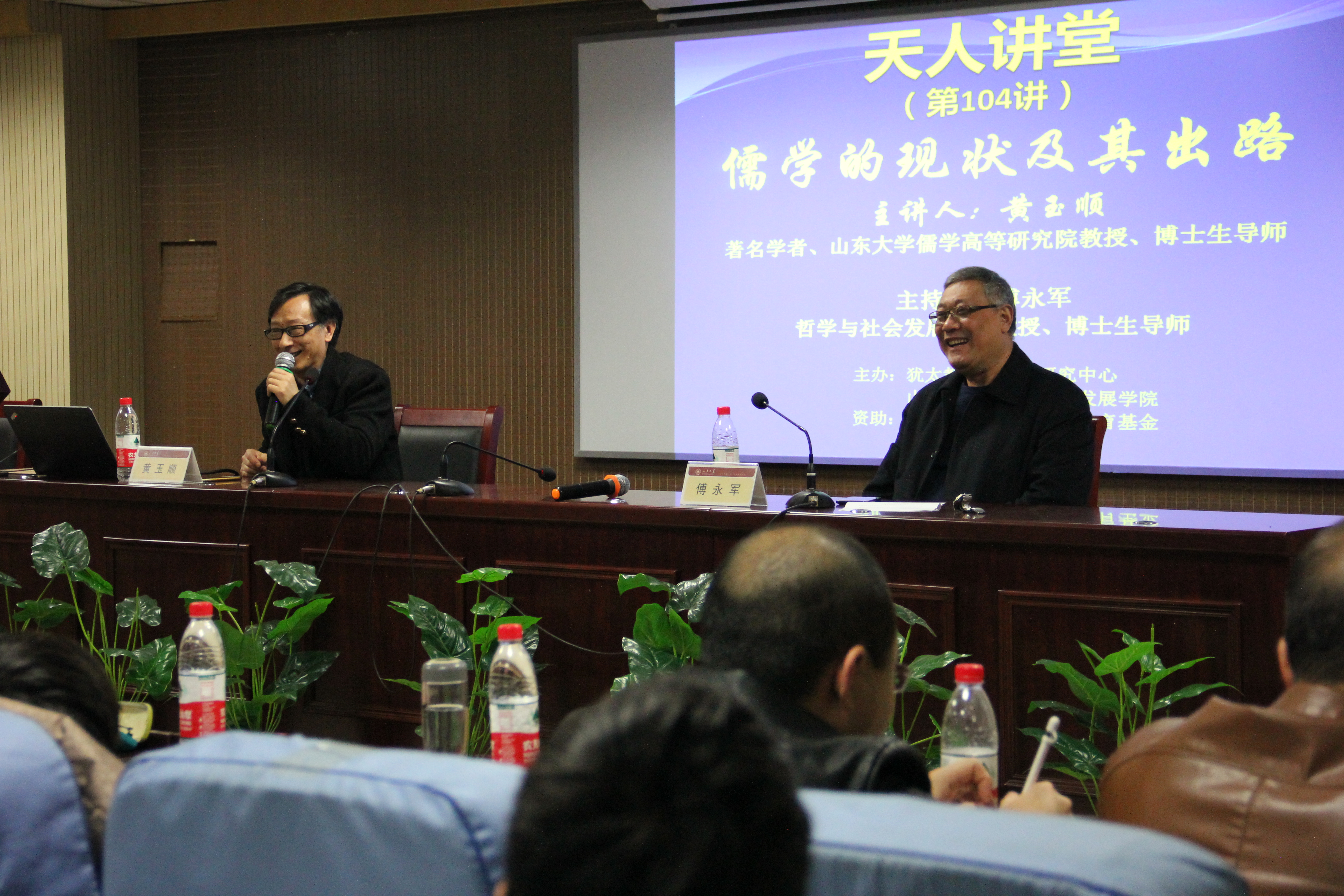 11月20日,著名学者、太阳成集团tyc151cc儒学高等研究院黄玉顺教授做客“天人讲堂”第104讲,演讲题目为“儒家的现状及其出路”。