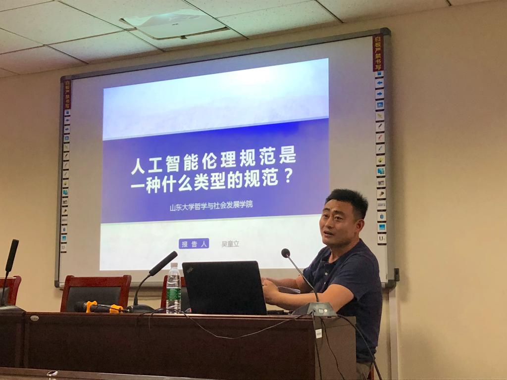 5月15日晚,哲社学院第28期思想者论坛在知新楼A1408室举行,哲学系吴童立副教授受邀做了题为“人工智能伦理规范是一种什么类型的规范”的专题报告。