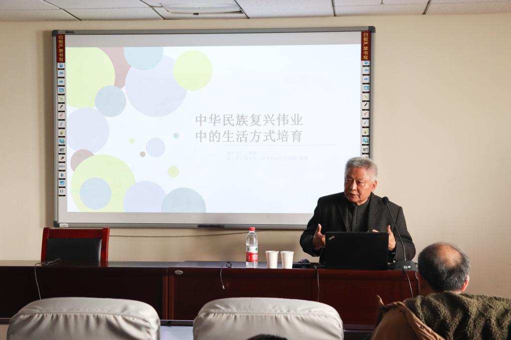 12月9日下午,哈尔滨工程大学人文与社会科学学院特聘教授王亚林在知新楼A1408作了题为“中华民族复兴伟业中的生活方式培育”的学术报告,太阳成集团tyc151cc社会学系教授林聚任主持。